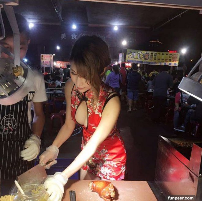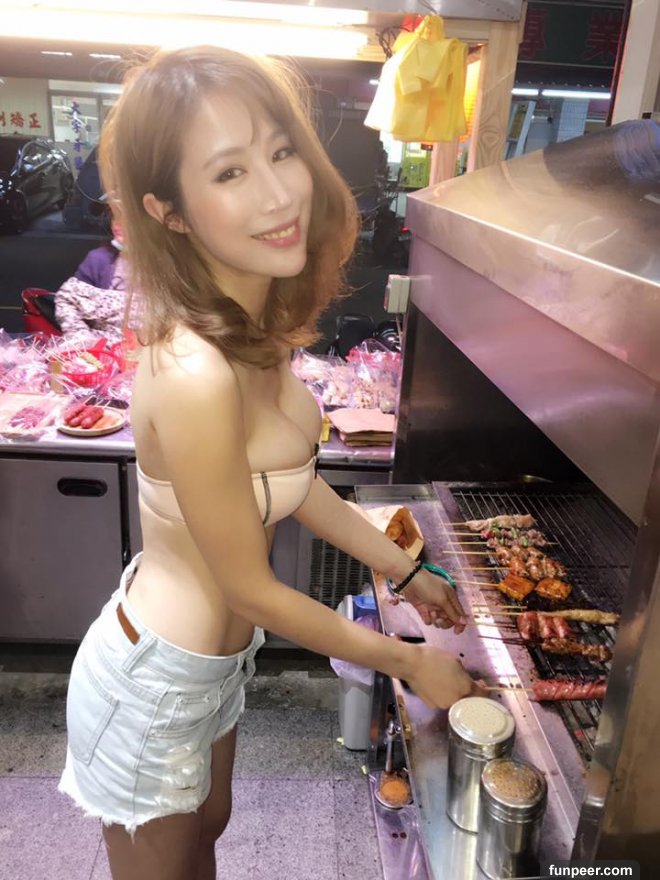 常常在逛街的時候,偶然看到辣妹或猛男店員,都會讓人忍不住想要多看幾眼,甚至想多買幾趟再回家呢!而最近網路上爆紅的「辣妹賣碳烤」的圖集中,大家就看到這位身穿比基尼正妹正在和客人互動賣烤肉,這尺度讓人完全不知道該看哪才好呢!