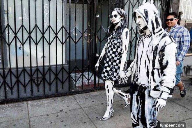 藝術的表達方式有很多種,有些人喜歡以雕塑、音樂、舞蹈等等的方式來呈現,當然也有很多的藝術家喜歡畫畫的,只是光是畫就有很多不一樣的派別及種類,人體彩繪也是其中一種,而且當人體彩繪融入真實世界後,反而有種衝突的美感。▼這是真實的人,還是畫作?美國華盛頓街頭出現了引起錯覺的視覺藝術,引起人們的注目。