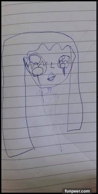 ▼直到某一天,她母親發現她的圖越來越奇怪,有畫出自己在哭的樣子,甚至還有疑似男性生殖器官的圖。