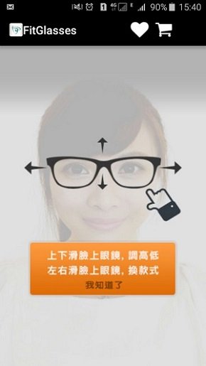 資料載入速度不夠快(小編使用機型為Nexus 5X)3D擴增實境的配戴時,若將頭部左右轉向時,鏡腿(眼鏡長度)無法與人臉很契合的層疊無法做到線驗光