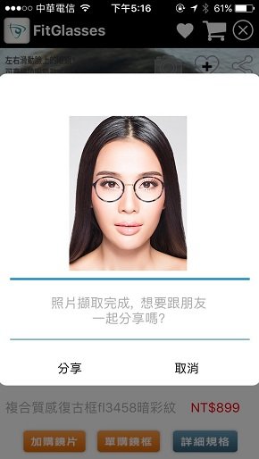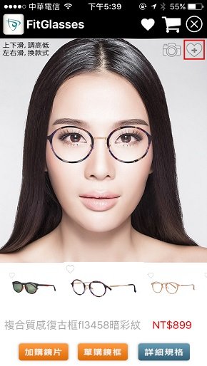 ▾試戴各款鏡框的樣子並將它們快照儲存下來