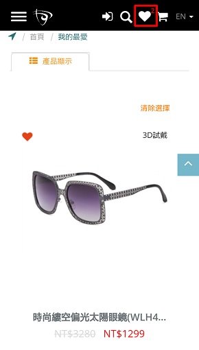 ▾點選右上的愛心可將所有喜歡的商品加入「我的最愛」,稍後再到「我的最愛」一起瀏覽、試戴會更方便