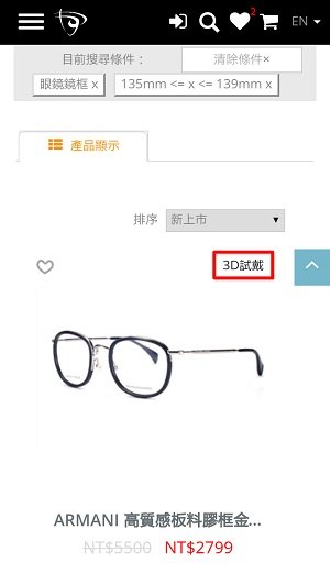 ▾設定好精準搜尋,直接往下滑至產品顯示按旁邊的「3D試戴」,便可以進入虛擬試戴模式。