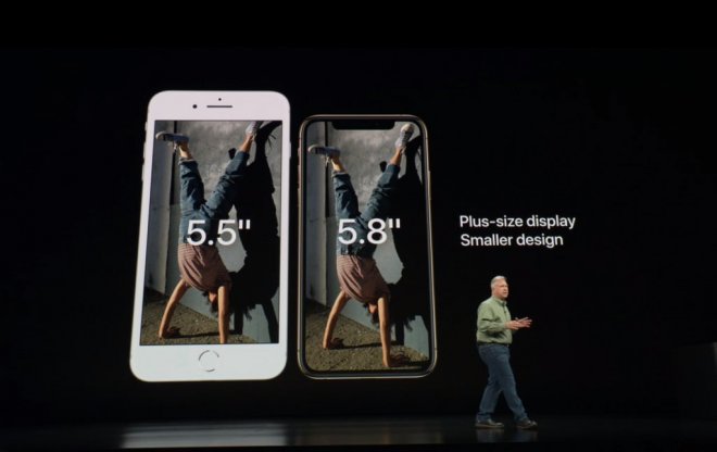 左邊是5.5吋的iPhone 8 Plus,右邊是5.8吋的iPhone Xs