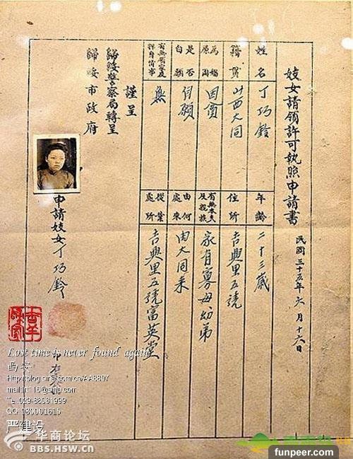 另外,民國時期還專門為妓女辦理上崗合格證,妓女持「妓女證」上崗也是一種景象!