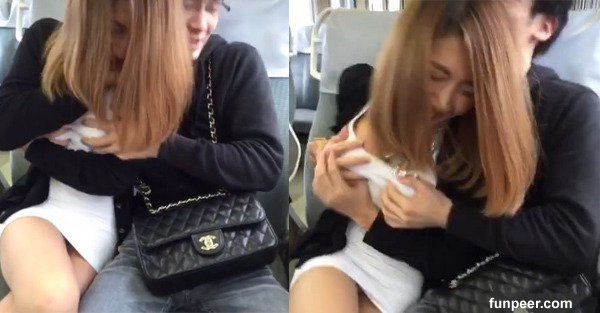 男子坐正妹旁邊,突然大喊一聲:受不了了,開始揉搓正妹胸部