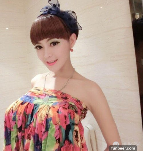 ▼結果是這位大陸的 G 罩杯車模,潘春春,感覺出來是人工美女沒錯,但大膽才是重點。