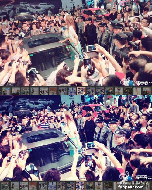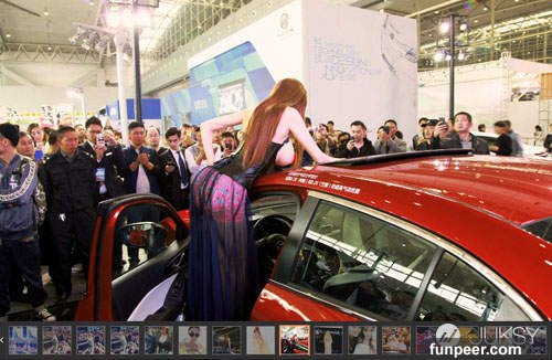 裸體的上空裝,讓現場一片攝影師以及參觀民眾瘋狂,黑丫丫的人潮把整台車完全包圍,不知道是在看車還是在看女模,簡直就是醉翁之意不在酒,車商成功吸引人潮,潘春春也是再度登上版面,這樣能說雙贏嗎...
