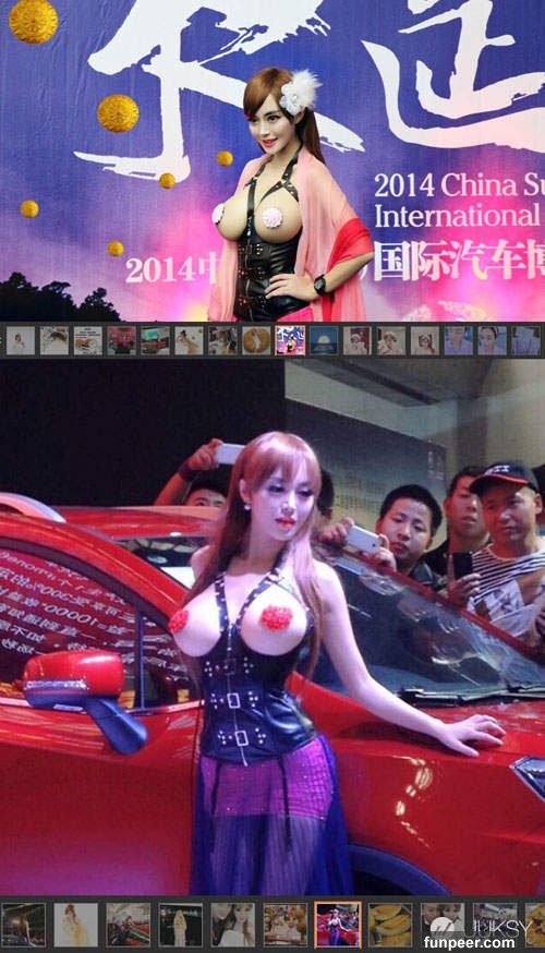 大陸車展為了吸引人潮,已經到了相當鹹濕灑狗血的境界,日前就在新疆烏魯木齊 2014 秋季國際車展當中,擁有傲人 G 罩杯爭議車模潘春春,再度謀殺攝影師底片,原因就是她的過激、近乎
