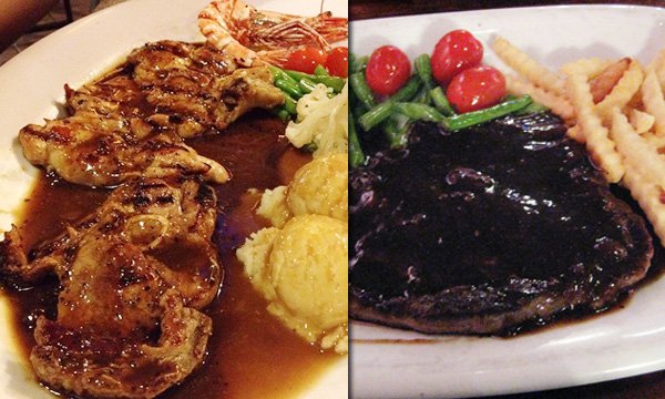 這是其中兩道的人氣餐點,左邊是 Mixed Grill ,而右邊則是 Charbroiled Black Pepper T-Bone Steak。