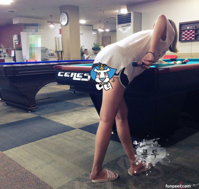 韓國妹不僅不愛穿內褲,還特別喜歡在撞球場大玩「一桿進洞」的遊戲XD