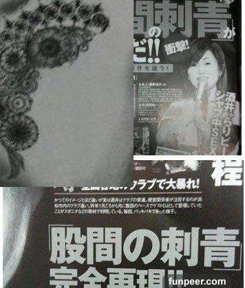 酒井法子因吸毒事件被捕後,糜爛生活被大面積曝光,紋身也成為焦點,據傳除除了左腳踝的蓮花刺青、左手無名指的星形刺青之外,右邊肩胛骨下方還有小小的蝴蝶刺青,更特別的是她的大腿內側,兩邊都刺有彩色、圖案對稱的曼陀羅花紋,雙腿張開時,宛如一隻蝴蝶或蛾展翅。